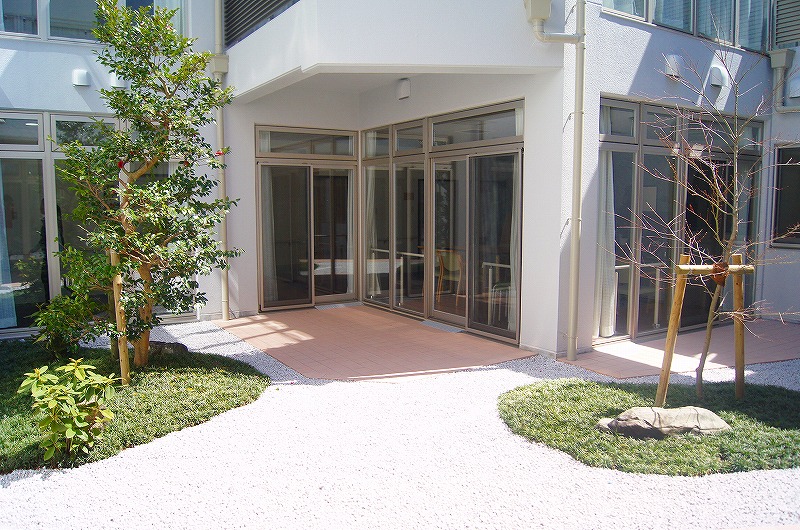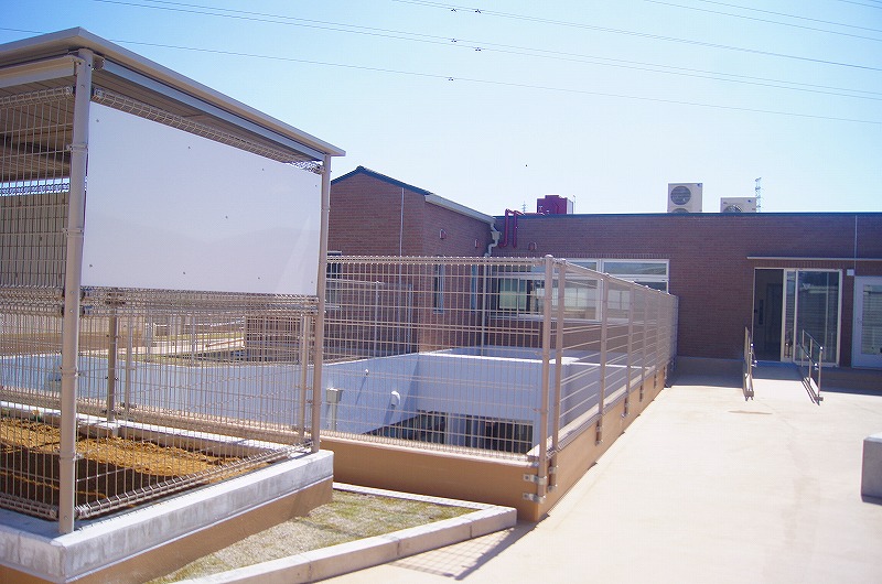 1階には中庭があり開放的なスペースとなっており、3階のテラスではうさぎの飼育も行っております。